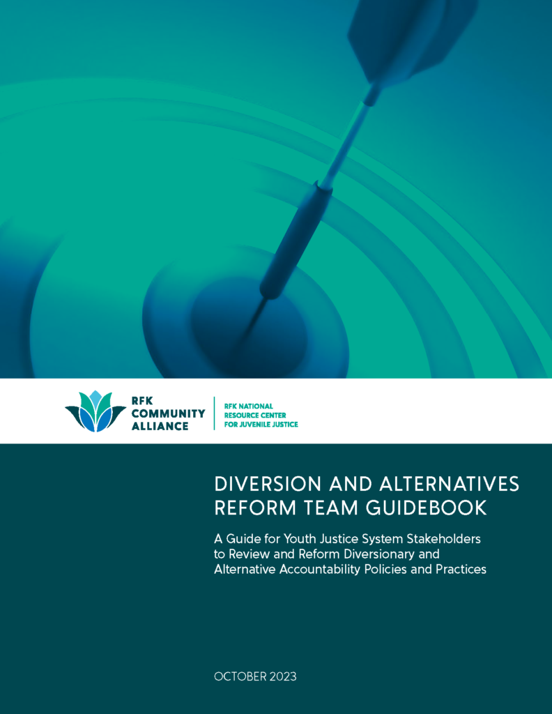 The RFK National Resource Center’s Diversion and Alternatives Reform Team (DART) Initiative supports state and local jurisdictions in their efforts to develop or enhance their system of alternative responses to formal prosecution. The RFK National Resource Center authored the Diversion and Alternatives Reform Team Guidebook to support the creation of a comprehensive system of diversionary practices and collaborative system approaches to fully realize community and agency partnerships that protect public safety, ensure accountability, and take advantage of restorative justice principles through a robust system of alternatives to formal prosecution to produce positive youth outcomes.