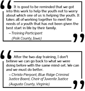 Youth who come into contact with both the juvenile justice and child welfare systems, known as dual status youth, often present highly challenging and complicated cases and tend to experience some of the poorest outcomes of all system-involved youth. This two-day training provides a comprehensive overview of the key best practices of multi-system coordination on behalf of dual status youth, preparing communities to develop and implement reforms to improve outcomes for these important youth.